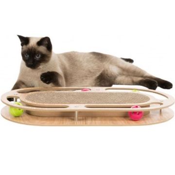 CAT SCRATCHING CARDBOARD WITH TOYS, WOOD AND CATNIP 46X4X25CM
