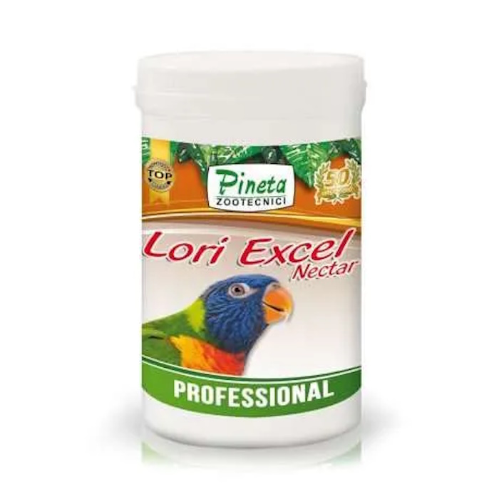 Pineta Lori Excel Nectar is a complete, highly concentrated powdered food for lories and lorikeets that can be served dry or mixed with water. It is formulated to provide a balanced diet, including essential proteins, vitamins, and minerals, with a low content of vitamin A and iron, mimicking the natural diet of these birds. Product Details: Type: A complete and balanced feed, which can also be a complementary food when used alongside other items like Lory Gel. Target Birds: Suitable for all Lori species and lorikeets, including Charmosyna. Key Ingredients: Contains pollen and products of the hive, high biological value proteins of both vegetable and animal origin, vitamins, minerals, glucose, and fructose. Nutritional Focus: Formulated with a low content of Vitamin A and iron, which is important for the specific dietary needs of lories. Usage: Can be offered dry, or diluted with water in a proportion of one part nectar to 5-8 parts water. When mixed with water, it forms a stable solution that prevents nutrients from settling. Benefits: Supports overall health, promotes healthy bone development in nestlings, aids in good egg-shell formation, and enhances the correct hue of plumage.